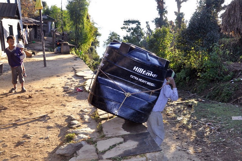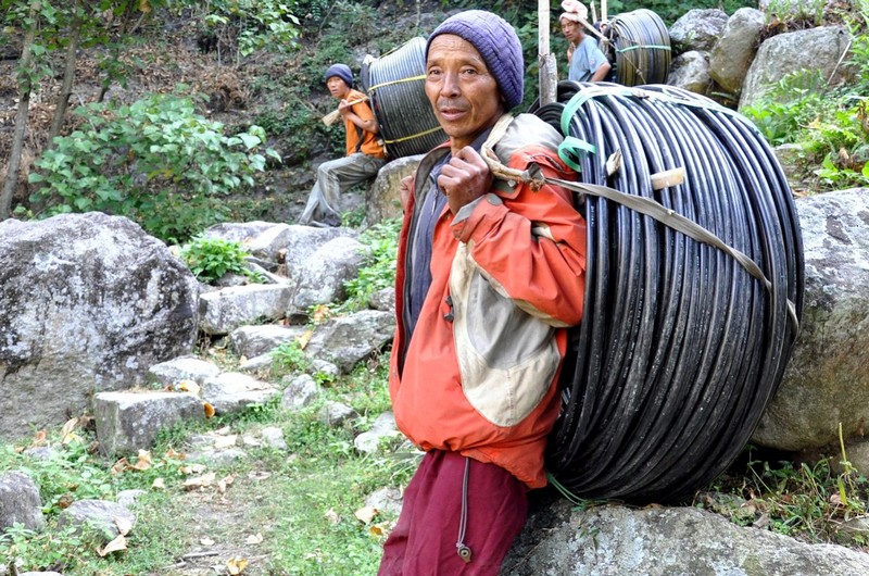 Po 11 godzinach jazdy po krętych drogach Nepalu, gdzie asfalt mignął mi tylko na początku trasy, dalej rozciągała się kamienista droga, a na końcu zwykły piach, dotarliśmy do celu. Tam czekali już na nas ludzie ze wsi, którzy według umowy stawili się po rury i zbiorniki, by przenieść je do wioski – dalej dojść można jedynie piechotą.