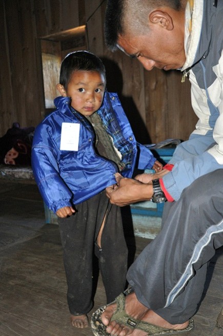 W wiosce, w której zakładałam wodę, spotkałam 2-letniego chłopczyka. Zauważyłam, ze zamyka oczy, kiedy jest na słońcu. Pasang wytłumaczył mi, że jeśli leczenie zacznie się nie później niż 6 miesięcy od wystąpienia pierwszych objawów, jest całkowita pewność, że człowiek będzie widział. W innym razie straci wzrok. Mój przewodnik mówił o tym ze spokojem, bez emocji, z obojętnością. Gdy spytałam, dlaczego rodzice nie pójdą z nim do lekarza, Pasang spojrzał na mnie z politowaniem i odrzekł: ”Przecież to kosztuje”. Miał rację, rodzina mieszkała w jednoizbowej chatce, zbitej z desek z prześwitami większymi niż moja dłoń. Zrozumiałam, że tutaj nikt nie odda ostatniego grosza przeznaczonego na żywność w okresie zimowym na leczenie jednego dziecka, zwłaszcza, że w chałupce jest następna piątka. Zostawiłam im pieniądze na leczenie. Mieli wyruszyć do szpitala, gdy tylko znajdą opiekę dla pozostałych dzieci.