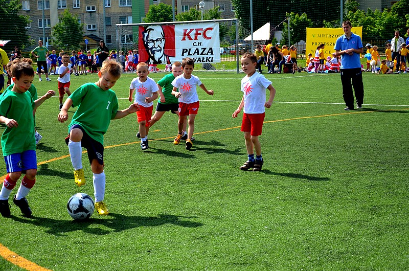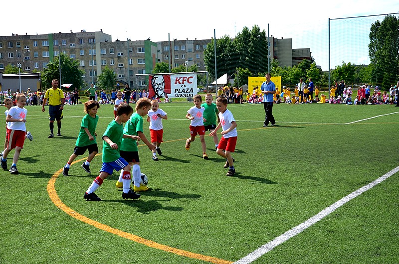 Boisko piłkarskie przy suwalskiej „siódemce” stało się we wtorek – 12 czerwca areną emocjonujących rozgrywek między przedszkolakami. VI Mistrzostwa w Piłce Nożnej dostarczyły wrażeń nie tylko publiczności, ale i samym zawodnikom, którzy w kolorowych koszulkach i z wiatrem we włosach starali się zdobyć jak najwięcej goli.