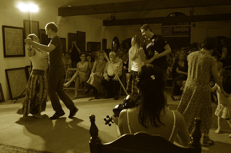 Zespół będący laureatem festiwalu „Nowa Tradycja” zaprezentował w piątek – 2 sierpnia mazurki, oberki i polki. Koloryt brzmieniowy kapeli stanowią harmonia, skrzypce i kontrabas, przywołujące na myśl klimat wiejskich zabaw. Bo o dobrą zabawę tu chodzi. Bez tańca nie byłoby udanego koncertu. O smaku, wyczuciu i szlachetności brzmienia wspomniało nawet jury ogólnopolskiego festiwalu. – Podeszliśmy do konkursu jak do dobrej zabawy. Nie sądziliśmy, że wygramy – wspomina Paweł Nowicki, w „Poszukiwaczach” grający na barabanie.