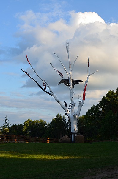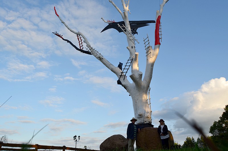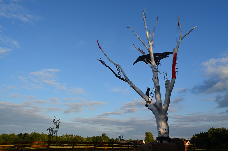 Wysoki na 20 metrów biały dąb, z czarnym krukiem, który przejął drzewo we władanie, jest znakiem rozpoznawczym wjazdu do domu Elżbiety i Mariana Murawskich w Gawrych Rudzie. Małżeństwo artystów z tą rzeźbą przestrzenną ma wiele wspomnień. Historia tej kompozycji brzmi dramatycznie, ale też fascynuje.