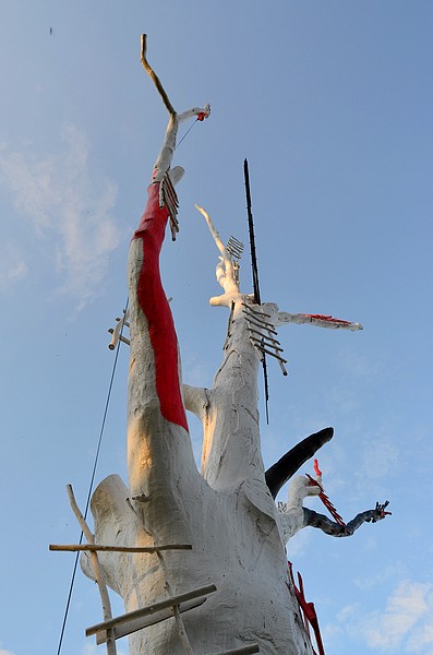 Uratowanie dębu pochłonęło wiele czasu, wiele pieniędzy, sporo nerwów. Było warto, ponieważ dla małżeństwa Murawskich rzeźba ma wymiar symboliczny. Elżbietę Murawską zachwyca mnogość perspektyw postrzegania. Drzewo z każdej strony wygląda inaczej, przywołuje inne skojarzenia. Marian Murawski do konarów białego dębu przybił płoty – drabiny. Pokrzywione konstrukcje, które symbolizują marzenia i nadzieje każdego człowieka. Płoty mają różne barwy, różne kształty, tak jak i marzenia zmieniające się w ciągu całego życia ludzkiego. Podobne konstrukcje znaleźć można na obrazach artysty z cyklu „Kukłady”. „Kalekie” drabiny, jak mówi o nich autor, to nic innego jak znak czasu – zastępowania wymarzonych „szczebli” innymi, tymi, które przynosi rzeczywistość.