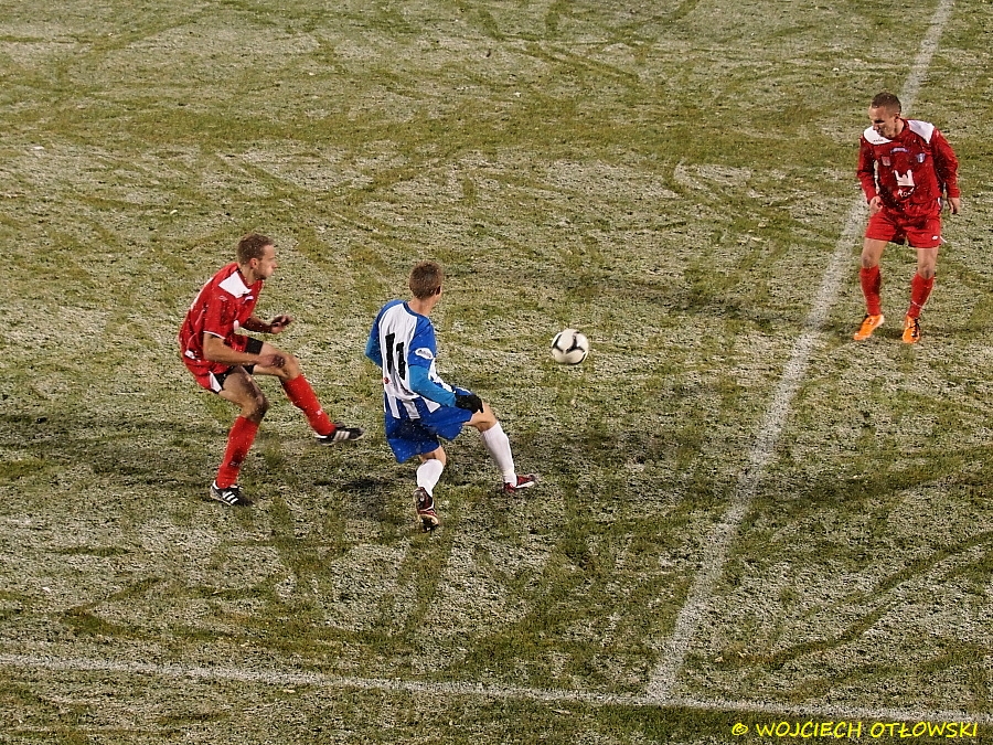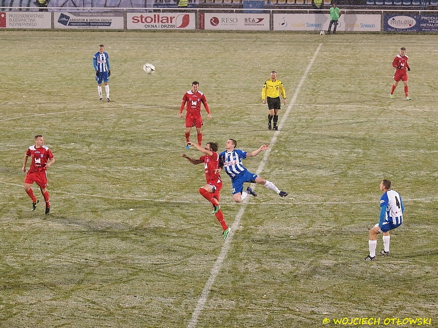 „Nafciarze” objęli prowadzenie w 68. minucie po golu Marcina Krzywickiego. Suwalczanie zdołali wyrównać na sześć minut przed końcem za sprawą Adriana Karankiewicza, który wykorzystał dobre dośrodkowanie z rzutu wolnego i strzałem głową umieścił piłkę w bramce. Niestety dwie minuty później błąd obrońców w środku pola skrzętnie wykorzystali goście, ustalając wynik meczu na 2:1.