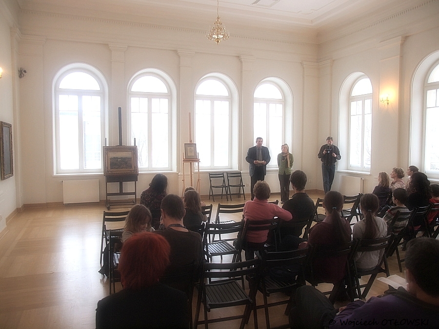 Każde spotkanie w Muzeum Okręgowym w Suwałkach ma temat przewodni. W tym miesiącu – z racji przedświątecznego terminu – wydarzeniu towarzyszył koncert uczniów Państwowej Szkoły Muzycznej I i II st. Ciekawostką okazała się także kolejna część spotkania. Wraz z „Myśliwymi na polowaniu” muzealnicy zaprezentowali studium postaci autorstwa Wierusza-Kowalskiego. Rysunek myśliwego stał się własnością suwalskiej placówki dzięki wsparciu sponsorów. Wyjątkowość pracy przejawia się w bardzo rzadkim w twórczości tego malarza datowaniu wraz z sygnaturą. Jak dodaje Eliza Ptaszyńska – w archiwum rodzinnym znajduje się również zdjęcie przedstawiające myśliwego przedzierającego się przez trawy, co nie pozostaje bez związku z obrazem – nowym depozytem muzealnym. Mężczyzna z rysunku obecny jest właśnie na płótnie zatytułowanym „Myśliwi na polowaniu”.