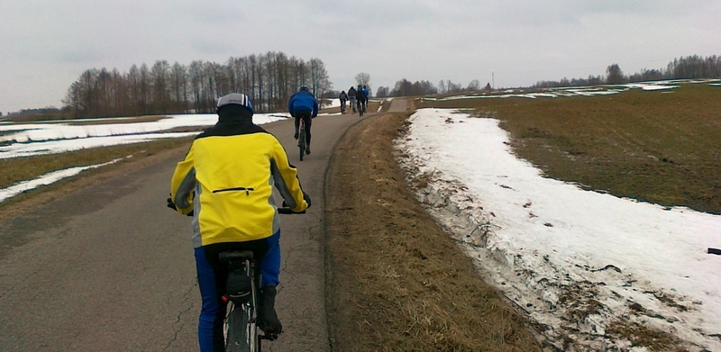 Niedzielny trening był więc dla nich tylko 40-kilometrową „wprawką”. Wyznaczoną wcześniej trasę pokonało 11 osób – jeden z kolarzy przyjechał z Różanegostoku, by stawić się na treningu. Rowerzyści wybrali drogi asfaltowe o małym natężeniu ruchu. Trudne warunki nie pozwoliły im jeszcze na poruszanie się po lesie i drogach gruntowych.
