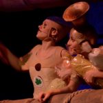 Bajka muzyczna to zbyt skromne określenie dla tego, co można było zobaczyć na scenie SOK-u. Przepiękne dekoracje, zachwycające kostiumy – nie tylko aktorów, ale również orkiestry odpowiadającej za efekty dźwiękowe, wprawiły młodszą i nieco starszą publiczność w osłupienie. W spektaklu interaktywnym, w którym co rusz pojawiały się elementy muzyczne (nawet oddzielające Jasia i Małgosię od świata kraty okazały się instrumentami – widać to na zdjęciach), także główni bohaterowie byli instrumentalni – Jaś przypominał trąbkę, a Małgosia flet.