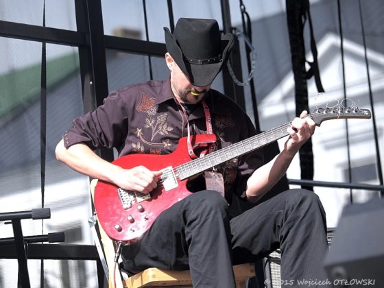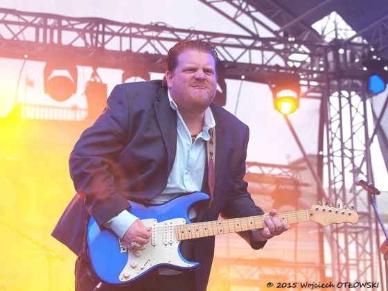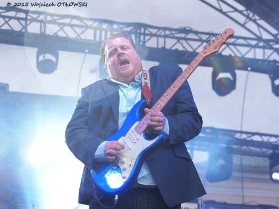 Początek występu Ryana McGarvey’a słuchałem i oglądałem (to ostatnie na telebimach – co ciekawe wręcz nie ma przesunięcia pomiędzy dźwiękiem ze sceny a przekazywanym obrazem) w namiocie vipowskim. Po pierwsze chciałem dać się wyszumieć fotografom w „fosie”, po drugie – wolałem poczekać aż się nieco ściemni. Już w namiocie koncert zaczął robić na mnie wrażenie. Wychwyciłem nawet, jak jeden z utworów McGarvey zakończył paroma taktami przywodzącymi przebój zespołu Soudgarden – „Spoonman”. Uznałem zatem, ze dość już tego lenienia się i należy obowiązkowo udać się pod scenę. A tam było co fotografować, było czego słuchać. Nie ukrywam, że koncert McGarvey’a przypadł mi do gustu o wiele, wiele bardziej niźli popisy wymiataczy gitarowych, występujących dzień wcześniej. Blues bluesem, ale wiele zagrywek Ryana wychodziło daleko poza ramy gatunku. Parokrotnie zaprezentował technikę przypominającą styl Toma Morello z „Rage Against The Machine”.