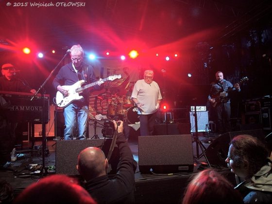 W piątek największe wrażenie zrobił na mnie występ The Clem Clempson Band & Chris Farlowe. Nie byłbym sobą, gdybym nie pozwolił sobie w tym miejscu na pewną dygresję. Wiosną pewien specjalista od zdejmowania „niepoprawnych wystaw” deprecjonował fakt zaproszenie panów z Colosseum. W historii SBF faktycznie bywało, że sprowadzanie „dziadków” dawało mierne rezultaty. Tak było choćby z Blues Band. Jak zobaczyłem Farlowe’a na konferencji prasowej, zacząłem mieć obawy, że i tym razem będzie podobnie. Ale nic z tych rzeczy! Na scenie muzyk, który skończy w tym roku 75 lat, robi wspaniałe wrażenie. Błyszczy wciąż nieskazitelnym głosem; bliższym wokalistyce jazzowej, niźli bluesowej. A że Clempson ze swym zespołem wspaniale akompaniował, czego więcej można było chcieć? Tylko słuchać! Z przyjemnością obserwowałem fanów Colosseum, a przyjechało ich do grodu nad Czarną Hańczą niemało. Co prawda byli przemoknięci, ale jakże szczęśliwi. Nie mogło zatem nie obyć się bez sięgnięcia przez Clempsona i Farlowe’a po repertuar Colosseum. Blues z nutką jazz-rockową wybornie smakował. A kto nie był, niech pluje sobie na brodę.
