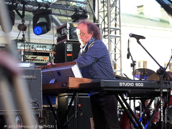 Przywołam jeszcze pewien fakt, który dosłownie wprowadził w osłupienie fotografów. Gdy ujrzałem scenę ulokowaną na ulicy Kościuszki, nie mogłem wyjść ze zdumienia – moim oczom ukazał się widok wprost trudnej do zliczenia masy instrumentów i urządzeń. Jako że na scenie stał już sprzęt obszernego podmiotu wykonawczego James “Blood” Ulmer Memphis Blood Blues Band & Ronny Drayton, nasze SBB musiało zadowolić się skrawkiem przestrzeni. Zatem trio nie doczeka się raczej z Suwałk ciekawych kadrów. Pod względem muzycznym nie było mowy o żadnej niespodziance. Jazz-rock wysokiej próby, choć bez bicia przyznaję, że o wiele, wiele bardziej cenię w tym stylu krakowskie Laboratorium. SBB od roku gra w oryginalnym składzie. Muzykowaniu został przywrócony Jerzy Piotrowski, przez dwie dekady przebywający wcześniej w USA. Powrót chyba udany. Na koniec dał nawet solówkę.
