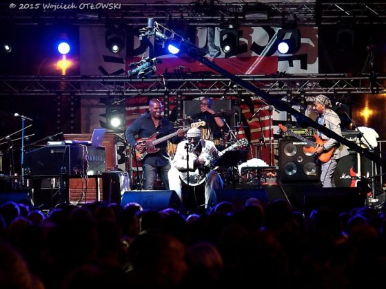 W końcu przyszła pora na Voo Voo. Też mają co w tym roku świętować – trzydziestolecie działalności. Zespół Wojciecha Waglewskiego grał nieco ponad godzinę, zdecydowana większość koncertu poszła zatem w eter. Czyli każdy zainteresowany mógł się sam przekonać, jakie dźwięki płynęły ze sceny. Voo Voo zaprezentowało materiał z ostatniego swego krążka – „Dobry wieczór”. Wartość dodaną stanowił występ w tle – i muzycznym, i scenicznym – Suwałki Gospel Choir. Podobnie jak w tekście dla białostockiej „Wyborczej”, tak i tu podkreślę fakt, że uwagę zwracał głos założycielki chóru – Anki Szafranowskiej. Dla niej, jak i dla innych członków Suwałki Gospel Choir, śpiewanie u boku Voo Voo było wielkim wydarzeniem. Jestem wielkim fanem Voo Voo, ale nie oznacza to bynajmniej braku obiektywizmu z mej strony. Był to niewątpliwie udany i niezwykle ciekawy występ, ale jakoś na kolana mnie nie rzucił.