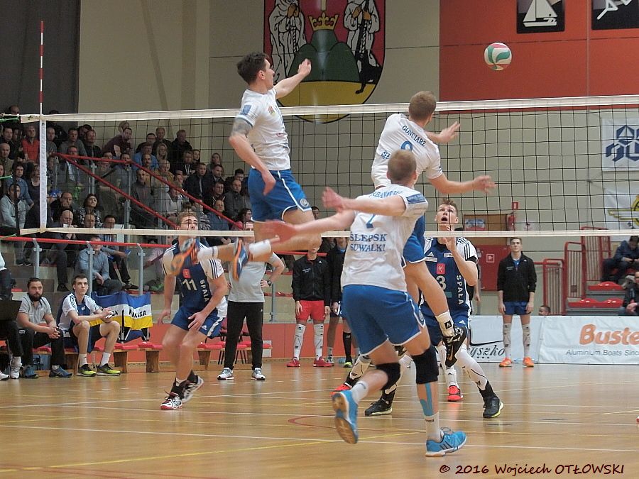 23.04.2016, Suwalki, Hala OSiR, I liga siatkowki mezczyzn, Pierwszy mecz polfinalowy finalowy play-off Slepsk Suwalki – SMS PZPS Spala 2:3 .