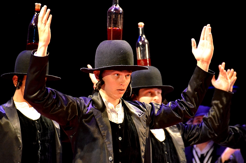 – Długo z chórem pracowałem i przygotowywałem ich do tego – mówi Jarosław Sołowianowicz, który razem z Ewą Zając opracował choreografię do podlaskiej wersji musicalu. – Chórzyści z natury są dosyć statyczni, a w tym musicalu poruszają się jak zawodowi ancerze. Taniec żydowski w naszym spektaklu – weselny i z butelkami – jest zaczerpnięty z filmu, ponieważ tamten najlepiej oddaje jego charakter. Taniec żydowski jest zlepkiem tańców bałkańskich: rumuńskich, bułgarskich, greckich. W latach 80., kiedy do Europy przyjechały amerykańskie grupy klezmerskie, został znacznie zmodernizowany. Pozostały charakterystyczne gesty rąk uniesionych w górę, ponieważ tancerze żydowscy tańczą dla Boga, niekiedy przechodząc w rodzaj transu.