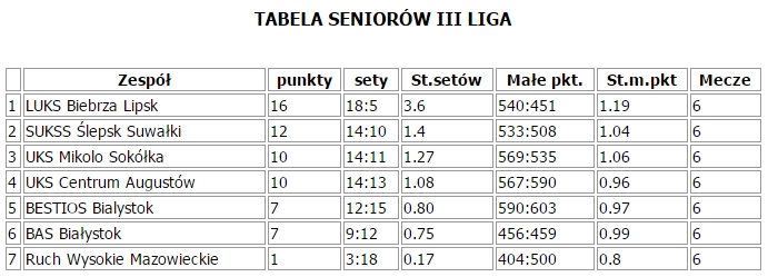 Tabela III ligi seniorów