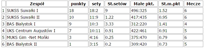 Z kolei w najbliższą niedzielę zapraszamy wszystkich sympatyków siatkówki do Zespołu Szkół nr 10 w Suwałkach gdzie o godzinie 10:00 rozpocznie się II Mikołajkowy Turniej minisiatkówki o Puchar Prezesa SUKSS Suwałki. W zawodach udział wezmą dzieci z Suwałk, Białegostoku, Sokółki, Moniek, Gołdapi, Zambrowa, Augustowa i Białowieży. Łącznie około 200 młodych zawodników.