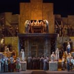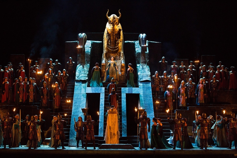 Obsada: Liudmyla Monastyrska jako Abigaille, Jamie Barton jako Fenena, Russell Thomas jako Ismael, Plácido Domingo jako Nabucco, Dmitry Belosselskiy jako Zachariasz.