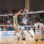 13 IV 2017; Suwałki – Hala OSiR; piąty, decydujący mecz finałowy play-off: Ślepsk Suwałki – Aluron Virtu Warta Zawiercie 2:3. Atakuje Wojciech Winnik