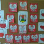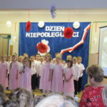 Starszaki z wielką powagą przybliżyły historię Narodu Polskiego wierszem, piosenką oraz slajdami z przeszłości. Dzieci z przejęciem oglądały, co dzieje się na scenie. Kilka dni wcześniej na tablicach grupowych pojawiły się prace plastyczne o tematyce patriotycznej.