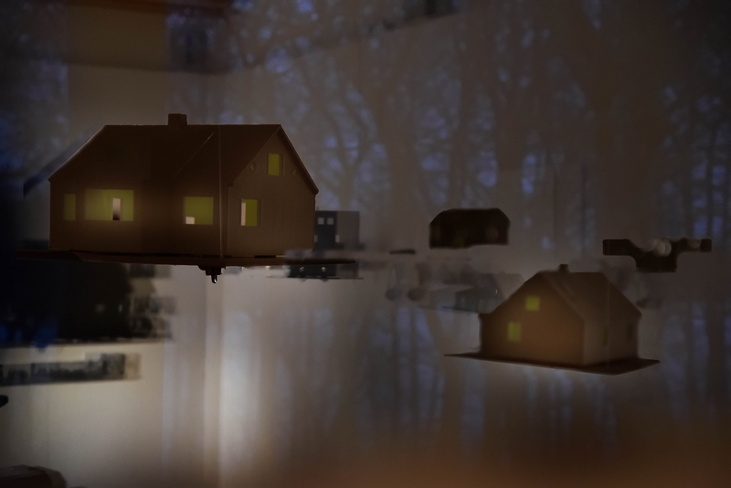 W wystawę wchodzimy jak w otwartą księgę i znajdujemy się w samym środku mapy oddającej przestrzeń naszych wiosek. Wśród dróg i jezior, dolin i pagórków stoją domy uczestników projektu. Odwiedzaliśmy ich gospodarzy, by udokumentować, jak wyglądają obecnie. Później powstawały rysunki i projekty domów, które pozwoliły uchwycić je w realnym, współczesnym kształcie.