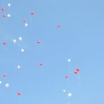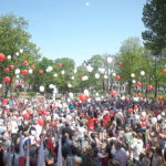 Wykonano pamiątkowe zdjęcie z dronu – w chwili gdy suwalczanie wypuścili w niebo białe i czerwone balony.