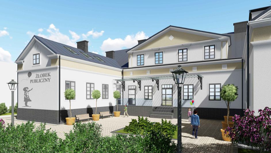 Żłobek składać się będzie z 8 oddziałów. Budynek przejdzie generalny remont, zostanie w całości przystosowany do potrzeb osób niepełnosprawnych (w tym zostanie zamontowana winda hydrauliczna). Teren zostanie utwardzony i uporządkowany, powstanie również plac zabaw.