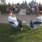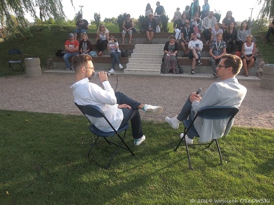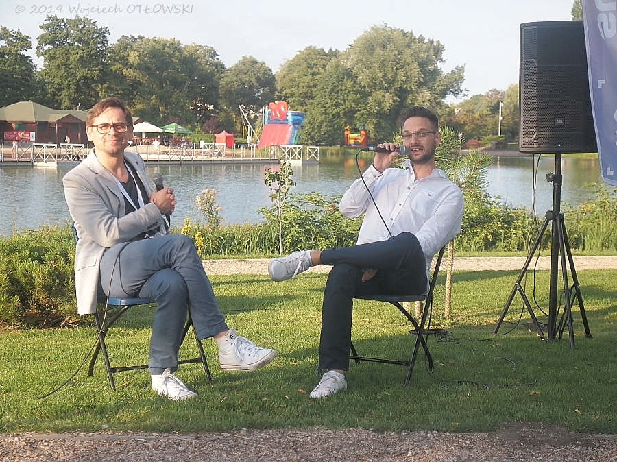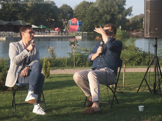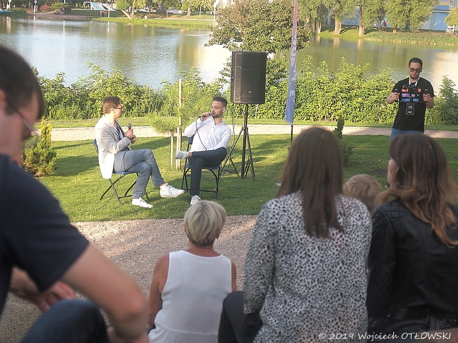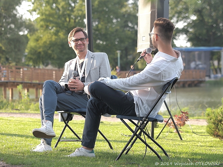 W nietuzinkowej scenerii wyspy na zalewie Arkadia rozmowy z gośćmi prowadził Artur Cichmiński, znawca kina, dziennikarz filmowy. Również pochodzący z Suwałk – zatem pierwszy z rozmówców, suwalczanin Paweł Górniak, nie krył radości z tego faktu. A poruszonym na początek tematem także były Suwałki – ceniony i nagradzany kompozytor wspominał swoją edukację muzyczną, wsparcie, jakie otrzymał od pedagogów. Według Pawła Górniaka, te małe sukcesy – dobre oceny czy docenienie starań, były czynnikami pomagającymi w wytrwaniu na obranej ścieżce.