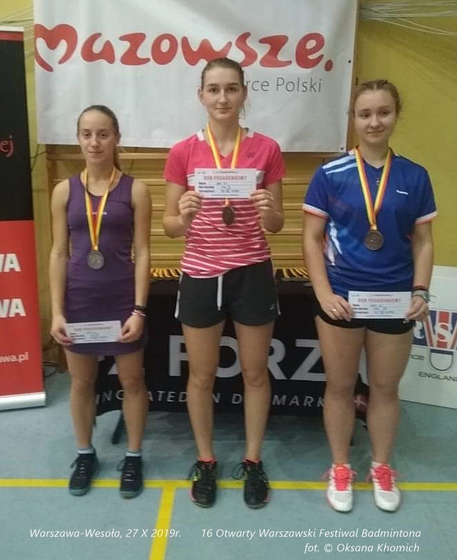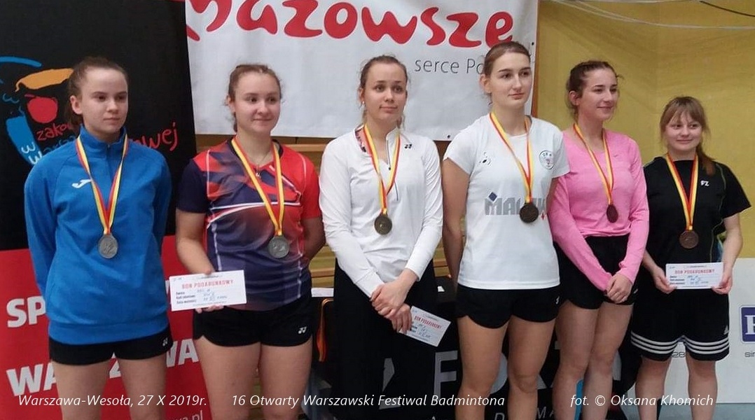 Dwa złote medale Anastazji Khomich i jeden brązowy – Viktorii Pletsiukhowej to wynik 16. Otwartego Warszawskiego Festiwalu Badmintona Warszawa-Wesoła, który odbył się w dniach 25-27 października.