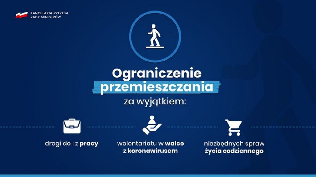 Wprowadzone zostały nowe zasady bezpieczeństwa, w tym ograniczenie w przemieszczaniu się. Obowiązek pozostania w domu nie będzie dotyczył jednak dojazdu do pracy czy załatwiania niezbędnych codziennych potrzeb takich jak zakup jedzenia, lekarstw czy opieki nad bliskimi.