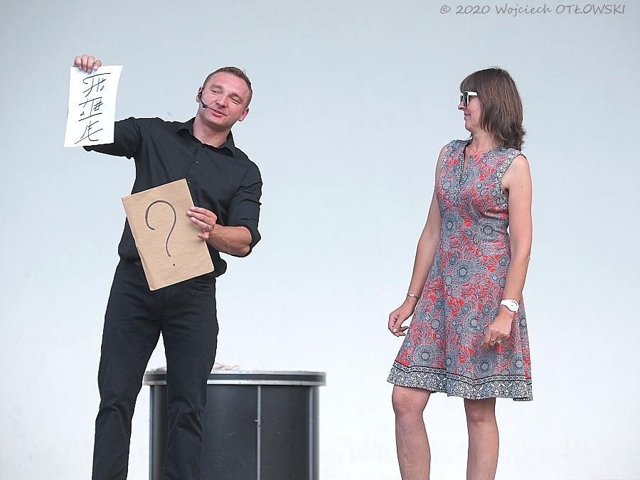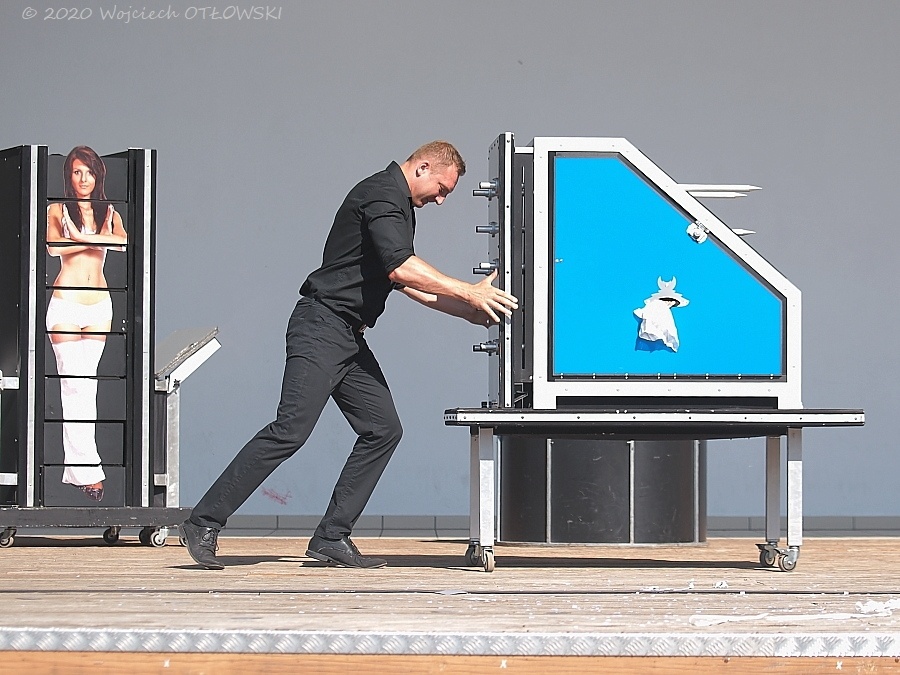 Na scenie towarzyszyła mu asystentka, zatem widzowie zobaczyć mogli pokaz przecinana czy zamiany miejsc. Także i widzowie zapraszani byli do towarzyszenia artyście, co szczególnie entuzjastycznie przyjmowali najmłodsi. Jak się wnet okazywało, wszyscy mieli prawdziwe zdolności w prezentowaniu iluzjonistycznych sztuczek, zatem nagradzani byli brawami i pamiątkową pocztówką. Łukasz Grant dowcipnie skomentował ów upominek: „Przedstawia ona ważny element naszej kultury, czyli mnie”.