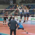 12 IX 2020 ; Suwałki Arena; PlusLiga; Ślepsk Malow Suwałki – GKS Katowice 0:3; o piłkę walczy Jan Firlej