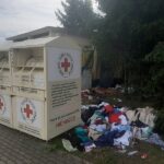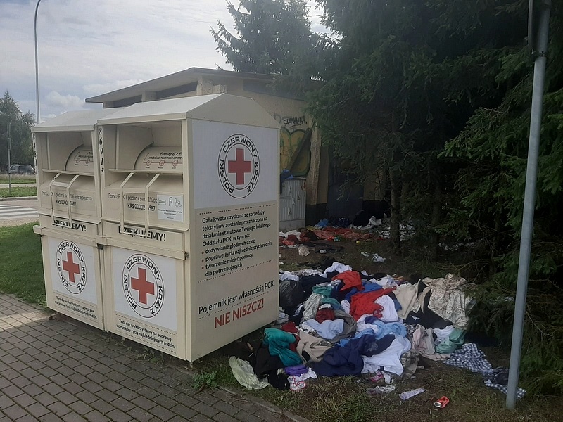 W pobliżu pojemników PCK przy ulicach Warszawskiej i Krakowskiej leży zbierana używana odzież i obuwie. To, co powinno znajdować się w pojemniku, leży na trawniku. Radna Anna Ruszewska tematem postanowiła zainteresować prezydenta Suwałk.