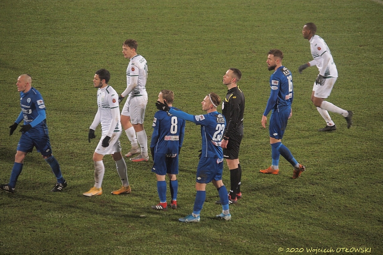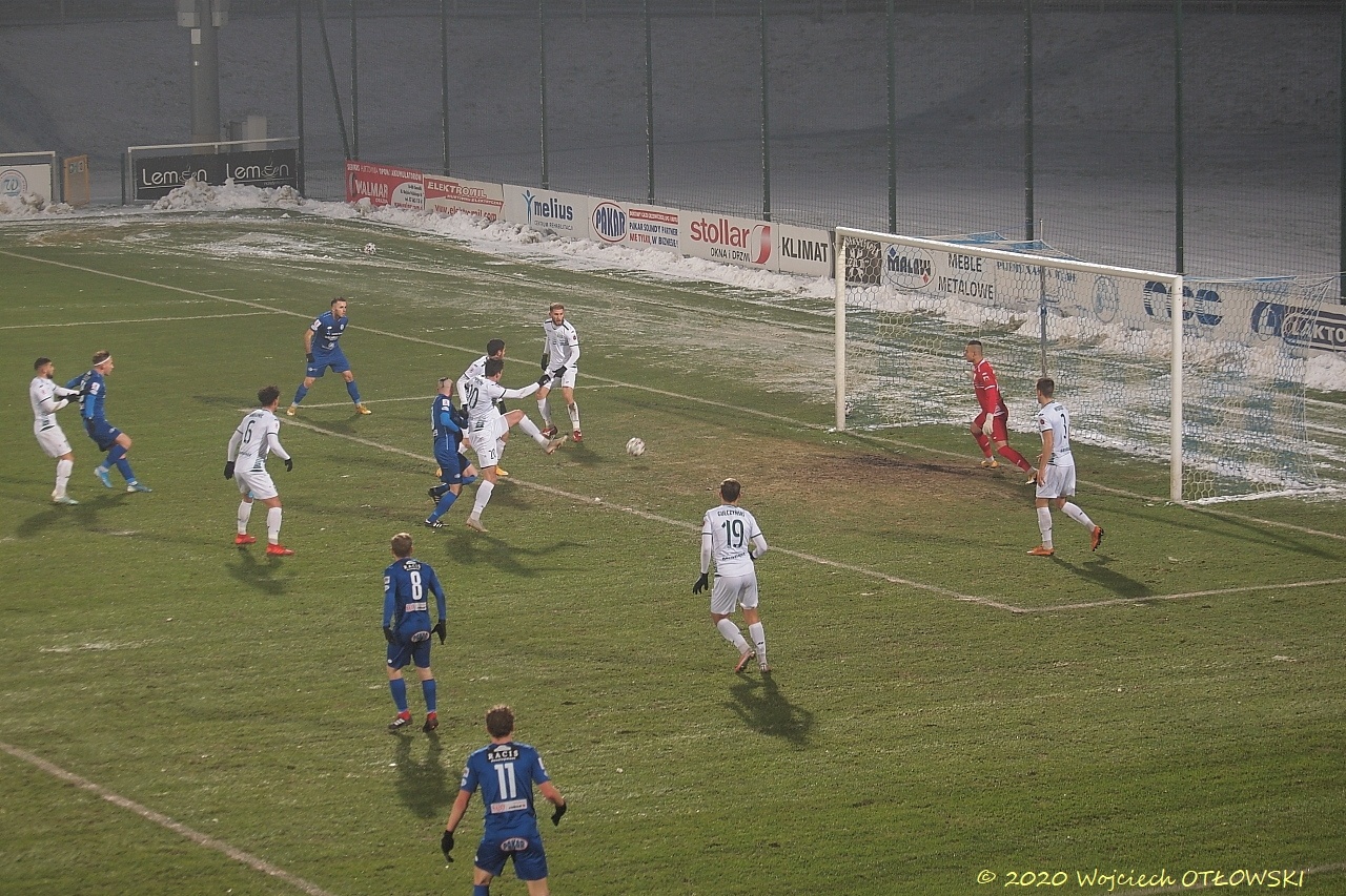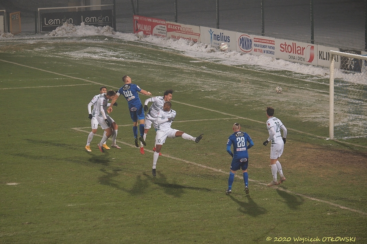 W pierwszej połowie biało-niebiescy mieli parę dobrych okazji, jednak ani rzuty wolne, ani stworzone sytuacje nie dały zamienić się na bramkę. Do tego obaj bramkarze interweniowali na tyle skutecznie, że na przerwę schodzili piłkarze z czystym kontem.