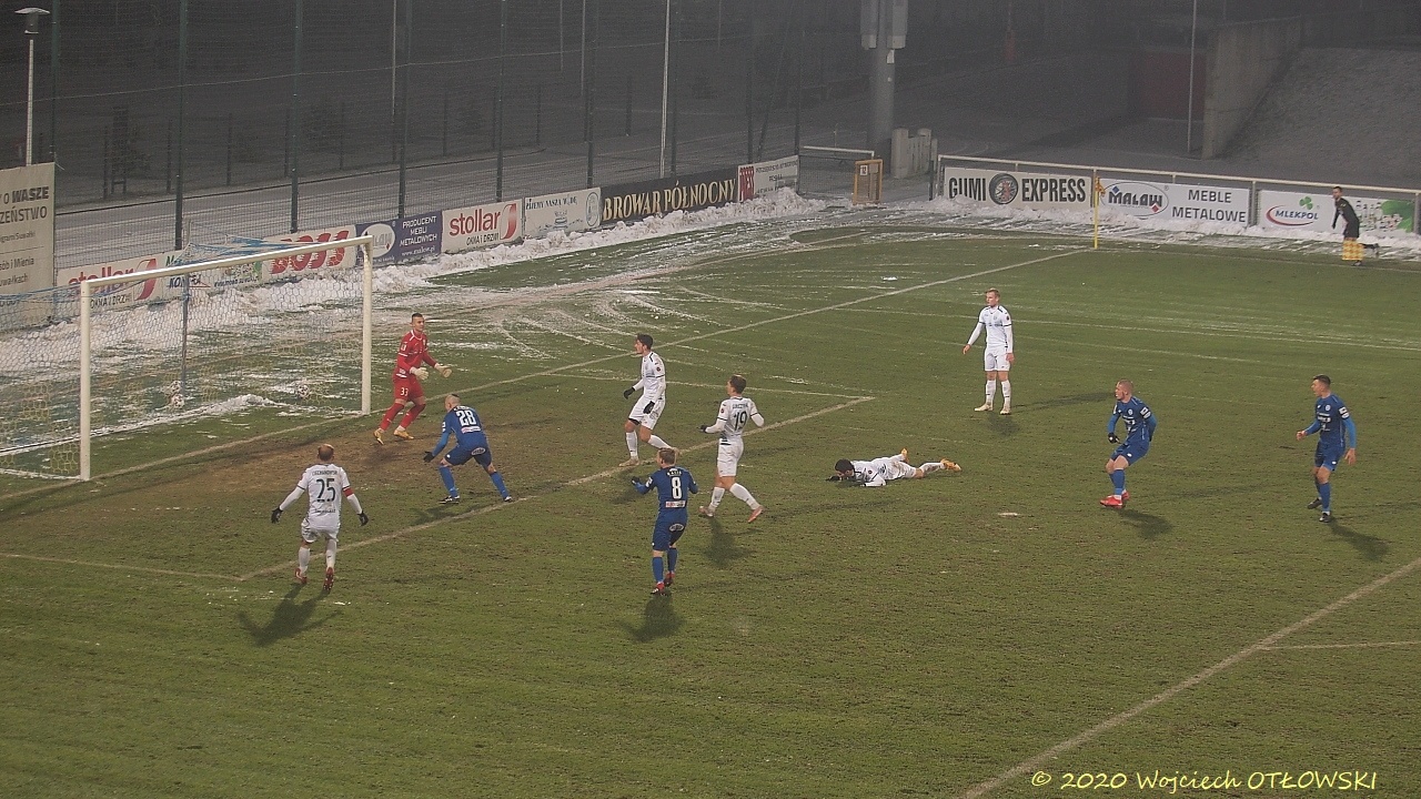 Ten gol poderwał Wigry do walki. Tuż przed tą sytuacją na boisku pojawił się Kacper Wełniak, który zastąpił Pawła Gieracha (wcześniej trener zmienił Patryka Czułowskiego, za którego wszedł Cezary Sauczek). I to właśnie Wełniak strzałem po ziemi doprowadził do wyrównania.