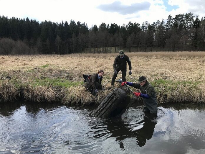 Trwa sprzątanie Czarnej Hańczy. Z rzeki wyłowiono opony, kosiarkę, telefony i garnki