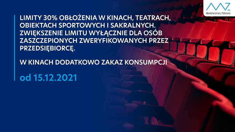 Informacjez Suwalszczyznyz Suwałk Kolejne obostrzenia od 15 grudnia Przez Iwona Danilewicz - 08/12/2021 FacebookCopy URLXWhatsAppLinkedinPinterest Zmniejszenie limitów w restauracjach, kościołach i kinach – tam dodatkowo zakaz konsumpcji. Zamknięte dyskoteki i kluby z miejscem do tańczenia. Od 15 grudnia wchodzą w życie kolejne obostrzenia. Ministerstwo Zdrowia informuje: