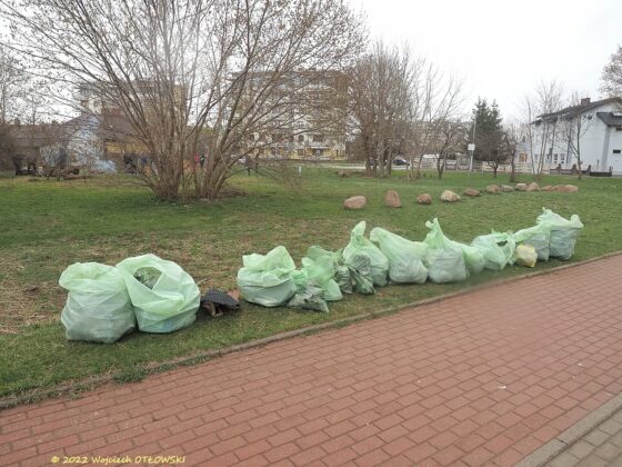 Spora grupa osób wyposażonych w rękawiczki i solidne worki w chwilę później ruszyła do sprzątania. Wśród zieleni – drzew, krzewów i kwiatów ukrywało się niejedno niemiłe znalezisko… Butelki, przeróżne opakowania, części sprzętu elektronicznego, gruz, pobita umywalka – to wszystko trafiło do worków niestrudzonych sprzątających. Składowano je przy chodniku, skąd zabrać je mieli pracownicy Zarządu Dróg i Zieleni.