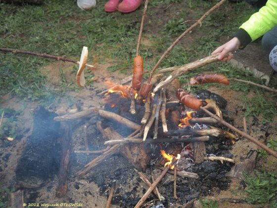 Potem na dzielnych sprzątających czekała nagroda – zapłonęło ognisko, na którym upieczono kiełbaski, chleb, pianki. Pogoda nie sprzyjała wyciąganiu lektur, zatem ten punkt programu oraz zabawy przeniesiono na inną okazję, ale był czas, by porozmawiać, pobyć w gronie osób, dla których podobne wartości są ważne, no i nacieszyć oczy kawałkiem pięknie posprzątanych Suwałk.