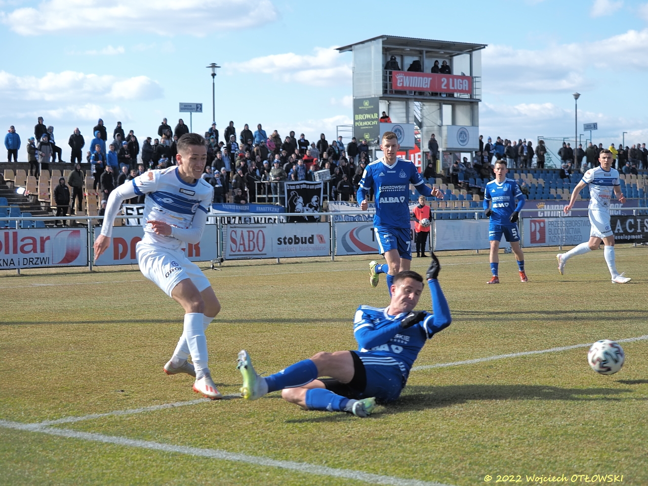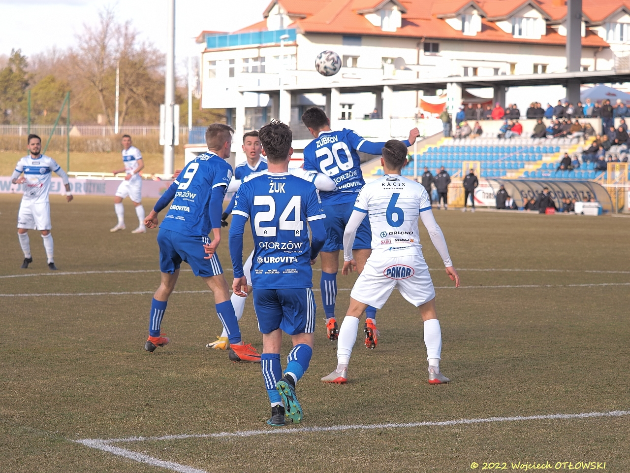 W dziesiątej minucie suwalska obrona zagapiła się przy rzucie rożnym. Piotr Stępień z najbliższej odległości celnie skierował piłkę do bramki biało-niebieskich. Suwalscy piłkarze dążyli do wyrównania, najlepszą sytuację ku temu mieli w dziewiętnastej minucie. Wtedy to Mariusz Rybicki oddał strzał, który został zablokowany, piłkę przejął Mateusz Sowiński i wykonał efektowny slalom między obrońcami gości, ale strzelił, niestety, prosto w bramkarza rywali.
