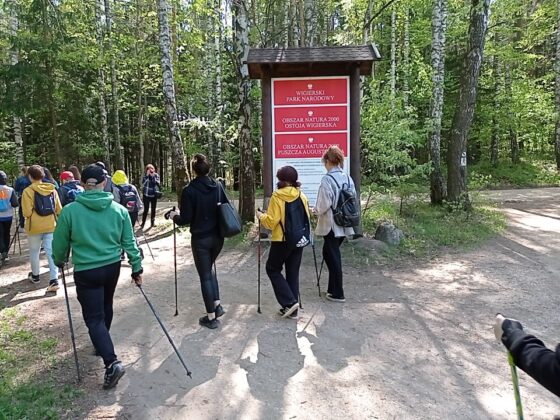 Po krótkiej rozgrzewce przed siedzibą Wigierskiego Parku Narodowego wszyscy udali się na plażę nad jeziorem Czarnym, gdzie brali udział w grach i zabawach integracyjnych oraz treningu marszu z kijami nordic walking. – Po solidnej zaprawie wyruszyliśmy na szlak, by poznawać i podziwiać piękno budzącej się do życia wiosną przyrody. Wigierski Park Narodowy jest miejscem, gdzie naprawdę aktywnie można spędzać czas poznając niezliczone leśne ścieżki i szlaki – komentuje Marcin Ostrowski, jeden z nauczycieli.