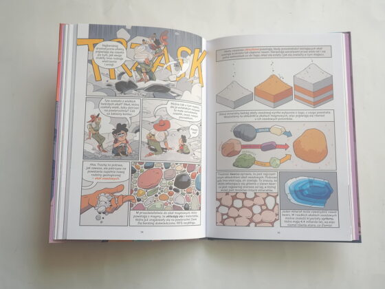 Można by powiedzieć, że sierpniowe propozycje Naszej Księgarni stoją pod znakiem budowania – bo i plac budowy, i rozbudowany domek, i wreszcie „Skały i minerały” – pasjonujący naukowy komiks o budowie wszechświata, Ziemi, skał… To zdecydowanie najpoważniejsza pozycja, ale seria „Naukomiks” zobowiązuje – z jednej strony porcja wiedzy pozwalającej najmłodszym poznać nowe zagadnienie, z drugiej – komiksowa historyjka, z barwnymi postaciami, niepozbawiona humorystycznych akcentów. Takie opracowanie niełatwego tematu daje możliwość zrozumienia jak powstały gwiazdy, planety, co dzieje się w ich wnętrzu, z czego się składają…