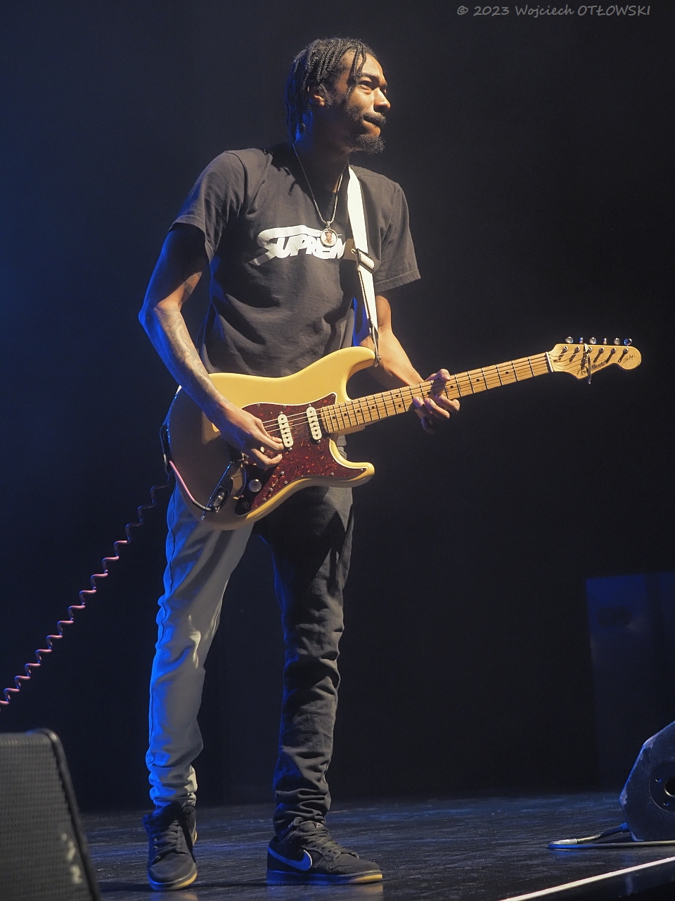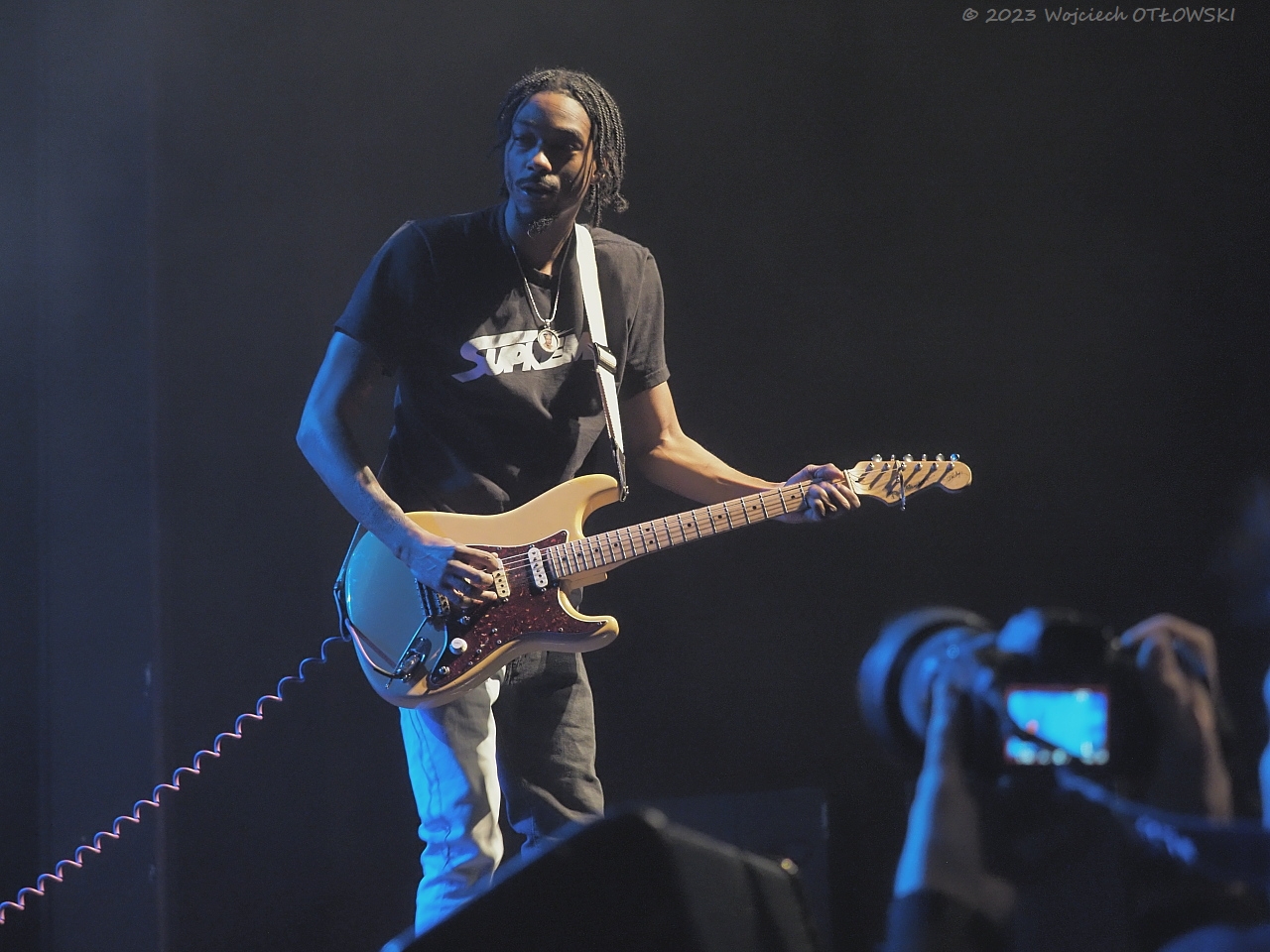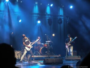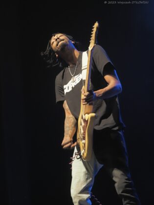 Równie młodzi są członkowie jego zespołu. Trzyosobowy podmiot wykonawczy doskonale się uzupełnia, choć bez wątpienia największą gwiazdą jest lider – równie dobrze prezentujący się jako muzyk i jako wokalista, świetnie nawiązujący kontakt z publicznością. Doskonale widać było, że granie sprawia artyście przyjemność. A swój kunszt pokazał w nietypowy sposób trzymając gitarę – tak jak Jimmy Hendrix, za plecami.