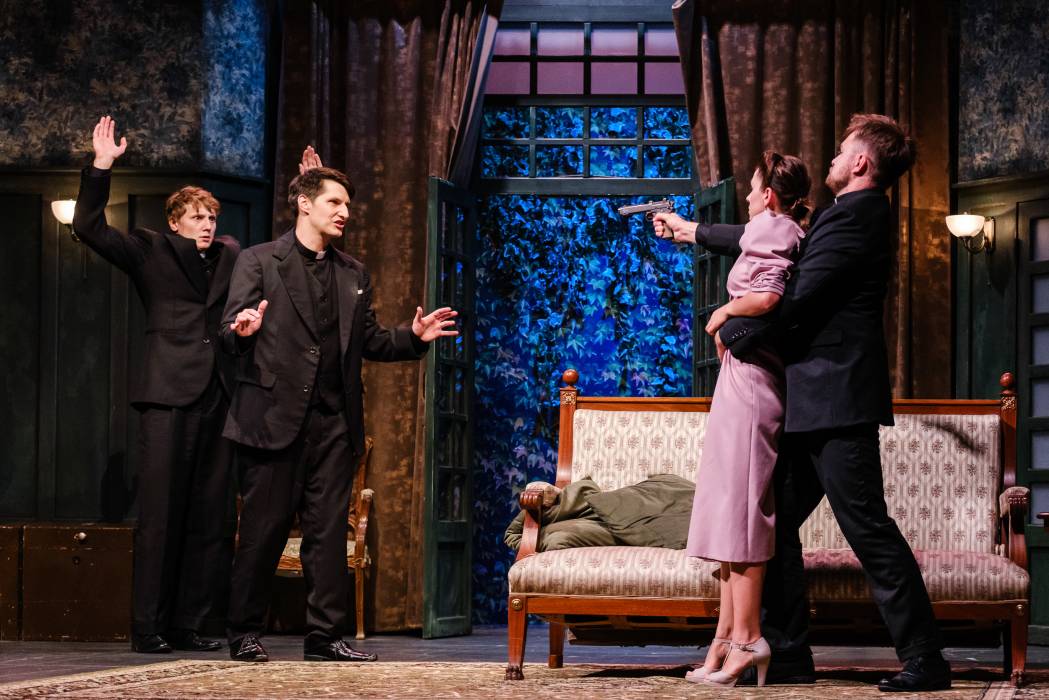 21, 22, 28 i 29 grudnia publiczność będzie mogła obejrzeć farsę „O co biega?” w reżyserii Grzegorza Chrapkiewicza na podstawie tekstu Philipa Kinga. To typowa komedia omyłek z szybkim tempem akcji. Fabuła rozgrywa się w czasie II wojny światowej w willi lokalnego pastora Toopa i jego żony Penelopy, byłej aktorki. Małżeństwo prowadzi spokojne życie na wsi, jednak wszystko zmieni wizyta niespodziewanego gościa podczas nieobecności duchownego. Rozpoczyna się lawina zdarzeń, która może doprowadzić do skandalu…