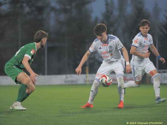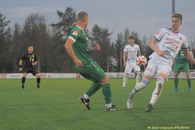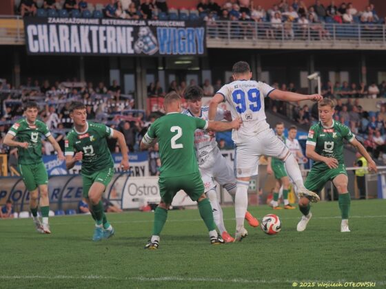 Zawodnicy Wigier podejmowali próby montowania akcji, ale zmiany wywołane kontuzją Kacpra Głowickiego sprawiły, że piłkarze nie do końca odnajdują się na nowych pozycjach. Trener biało-niebieskich nie miał na pomeczowej konferencji dobrych wieści – powrót do zdrowia naszego prawego pomocnika jeszcze potrwa.
