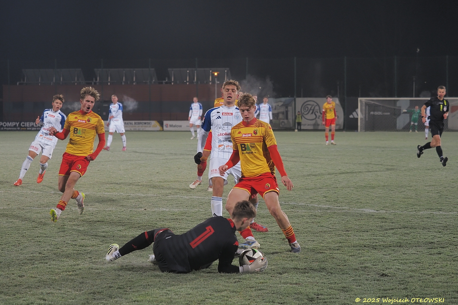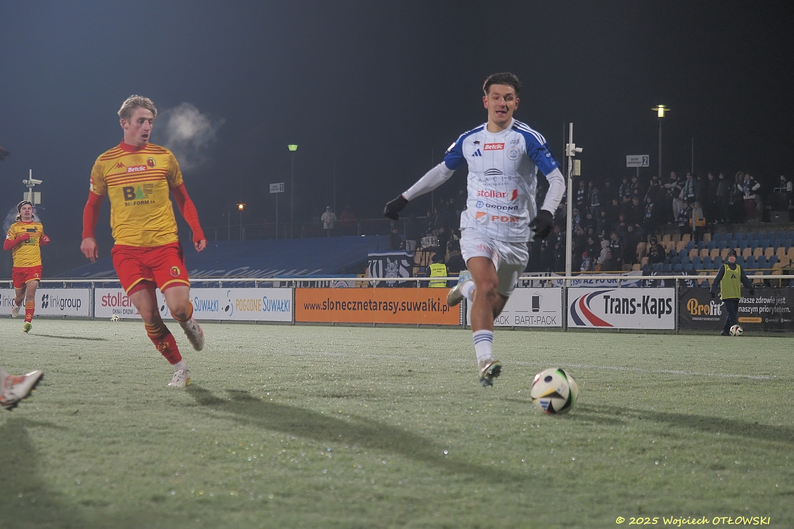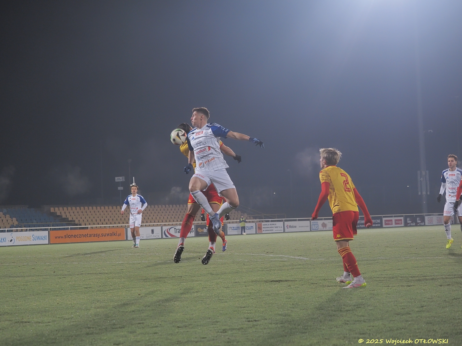 Oczywiście nie był to koniec emocji. Obie drużyny starały się osiągnąć swoje cele: Wigry podwyższyć wynik, a Jagiellonia II wyrównać – i szansa na to pojawiła się dla drużyny gości w drugiej połowie, gdy sędzia uznał za faul sytuację pod bramką Wigier. Na szczęście umiejętności Mateusza Taudula pozwoliły utrzymać czyste konto. Ucierpiały tylko palce bramkarza, zatem potrzeba była pomoc fizjoterapeuty.