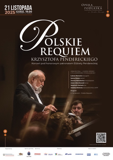 Tydzień po premierze, 21 listopada, zabrzmi Polskie Requiem Krzysztofa Pendereckiego monumentalne dzieło, w którym kompozytor połączył tradycję katolickiego requiem z refleksją nad polską historią i pamięcią narodową. Pod batutą Łukasza Borowicza wystąpi orkiestra i chór OiFP oraz znakomici soliści: Iwona Hossa (sopran), Joanna Motulewicz (mezzosopran), Adam Zdunikowski (tenor) i Wojciech Gierlach (bas). Początek koncertu o godz. 19.00.