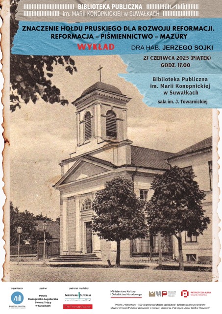 Projekt „Suwalscy ewangelicy, czyli Prusowie dzisiaj – 500 lat sąsiedztwa” był dofinansowany ze środków Muzeum Historii Polski w Warszawie w ramach programu „Patriotyzm Jutra. Wielkie Rocznice”.