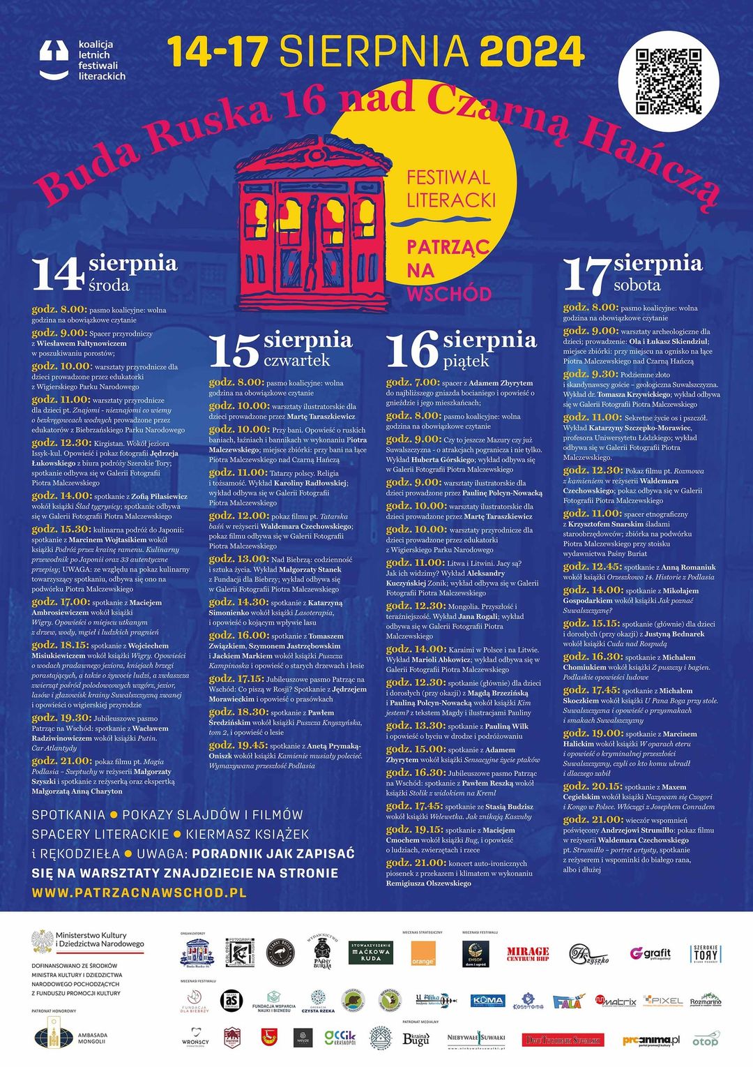 Prezentujemy program 10. jubileuszowej edycji Festiwalu Patrząc na Wschód! Gdzie? Buda Ruska 16. Agroturystyka i nie tylko, nad Czarną Hańczą Kiedy? 14-17 sierpnia 2024 r. UWAGA: Możliwość udziału w warsztatach dla dzieci i dorosłych oraz w spacerach przyrodniczych i etnograficznych jest limitowana zapisy na warsztaty i spacery będą prowadzone od 1 sierpnia 2024 r. wszelkie […]