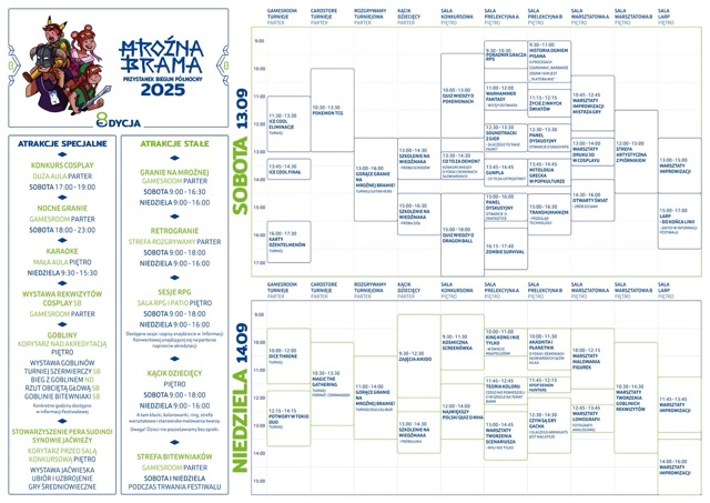 Festiwal Mroźna Brama odbędzie się 13 września w godzinach 9:00 – 18:00 i 14 września w godzinach 9:00 – 16:00.
